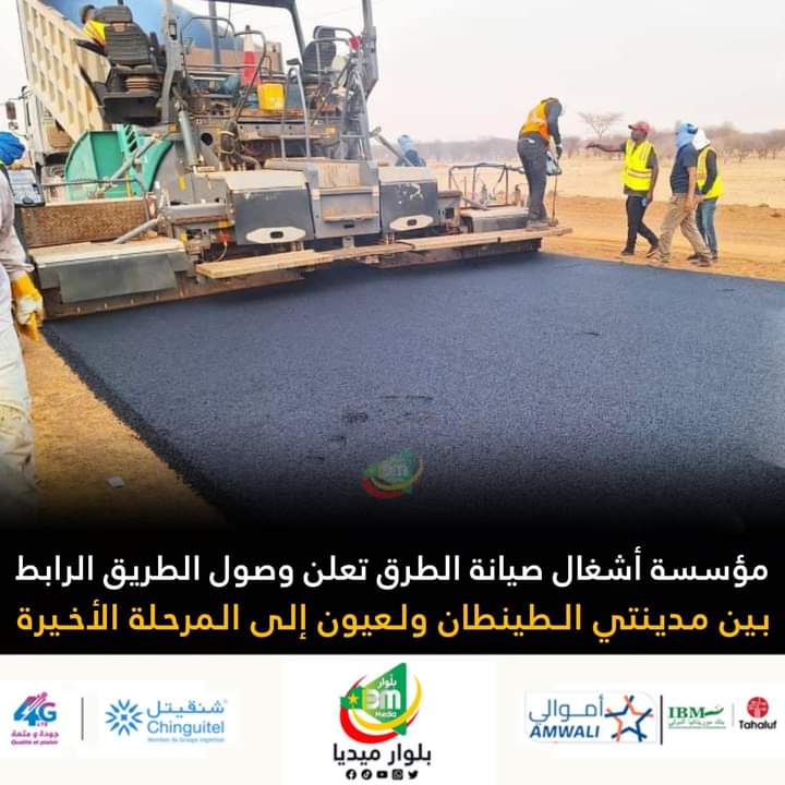 أعلنت مؤسسة أشغال صيانة الطرق وصول أشغال إعادة بناء وتأهيل المقطع الطرقي الرابط بين مدينتي الطينطان ولعيون بولاية الحوض الغربي إلى المرحلة الأخيرة.
