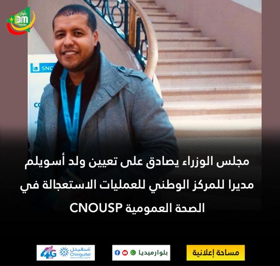 صادق مجلس الوزراء اليوم على تعيين الطبيب العسكري محمد بوي ولد اسويلم مديرا للمركز الوطني للعمليات الاستعجالة في الصحة العمومية CNOUSP و هو منشأة جديدة أسستها السلطات على غرار باقي الدول للتصدي للمستجدات الصحية الطارئة
