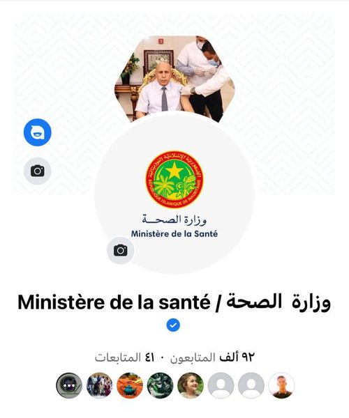 أصبحت صفحة وزارة الصحة الموريتانية على الفيسبوك ، أول صفحة حكومية تحوز على الإشارة الزرقاء بعد توثيقها، وهي أيضا الصفحة الأكثر متابعة من بين الصفحات الحكومية على المستوى الوطني، حيث تجاوزت حاجز 92000 متابع.