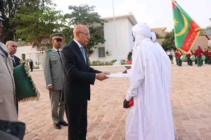 صور من تكريم رئيس الجمهورية السيد محمد ولد الشيخ الغزواني، لشهداء الوطن الثلاثة وتوشيحهم بوسام الاستحقاق الوطني مع ترقيتهم في الرتب العسكرية، تقديرا لتضحيتهم من أجل البلاد وعرفانا لشجاعتهم في الميدان.