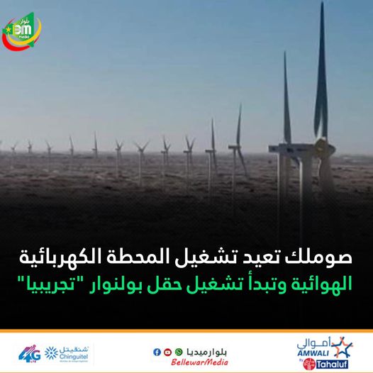 أعلنت الشركة الوطنية للكهرباء “صوملك” أمس الجمعة إعادة تشغيل المحطة الكهربائية الهوائية جنوب انواكشوط و بدء التشغيل التجريبي لحقل