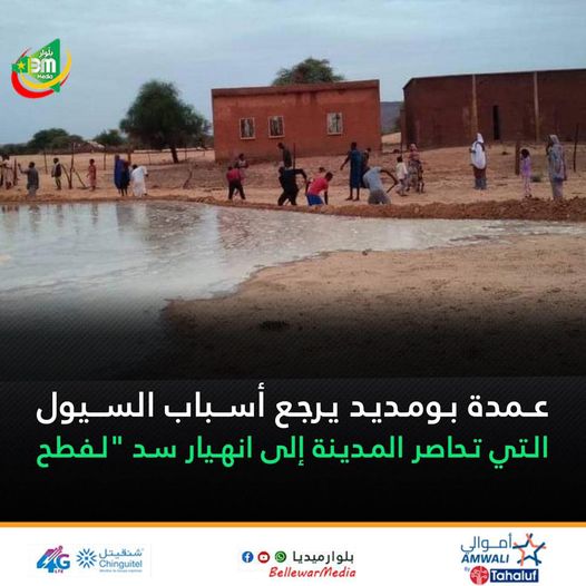 قال عمدة بومديد عبد الله ولد مد الله إن السيول التي حاصرت مدينة بومديد جاءت بعد انهيار سد لفطيح الذي كان يحمي المدينة.