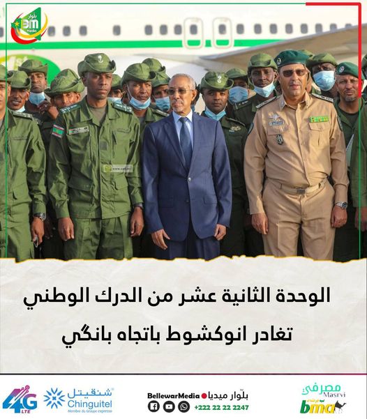 غادرت فجر اليوم العاصمة انواكشوط الوحدة الثانية عشر من الدرك الوطني متوجهة إلى مدينة “بانكي” عاصمة جمهورية وسط إفريقيا للعمل تحت مظلة الأمم المتحدة في إطار قوة حفظ السلام الأممية.