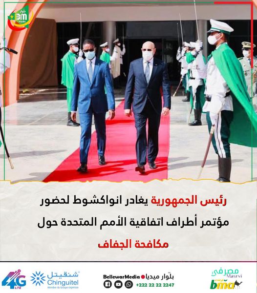 ويأتي سفر ولد الغزواني للمشاركة في الدورة الـ15 لمؤتمر أطراف اتفاقية الأمم المتحدة حول مكافحة الجفاف.