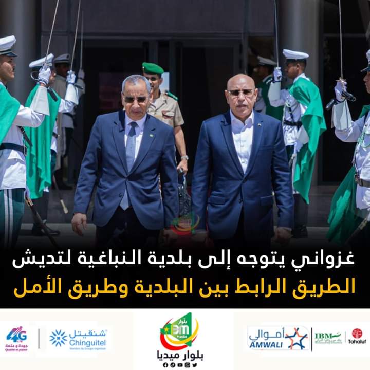 توجه رئيس الجمهورية محمد ولد الشيخ الغزواني، زوال اليوم الخميس، إلى بلدية النباغية بولاية اترارزة للإشراف على تدشين الطريق الرابط بين البلدية وطريق الأمل.