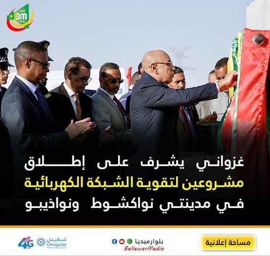 غزواني يشرف على إطــلاق مشروعين لتقوية الشبكة الكهربائية في مدينتي نواكشوط ونوا…