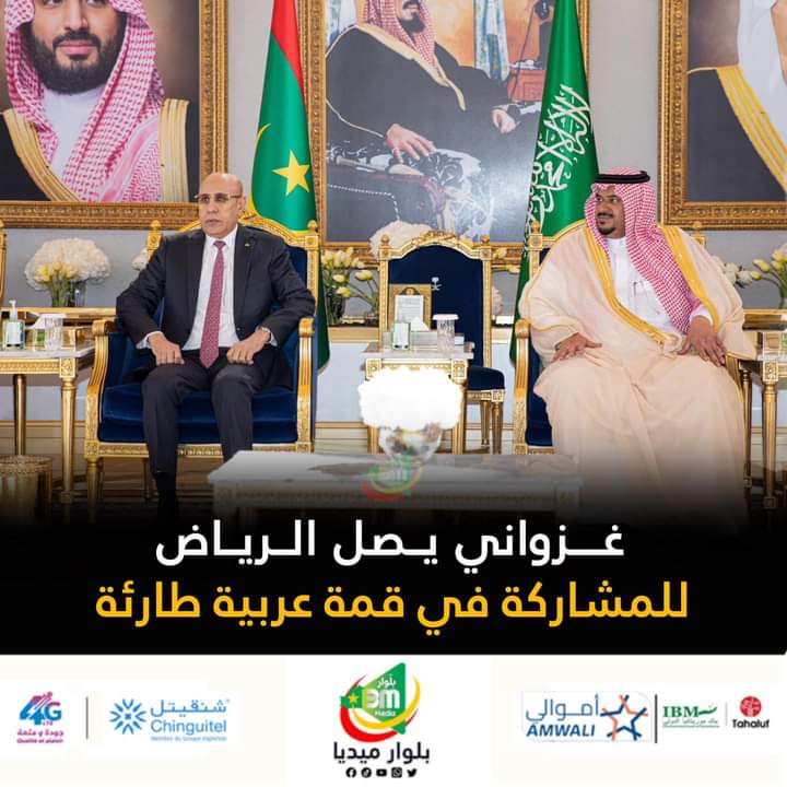 وصل رئيس الجمهورية محمد ولد الشيخ الغزواني، زوال اليوم الخميس إلى الرياض (المملكة العربية السعودية)، للمشاركة في أعمال قمة عربية طارئة، وأخرى إسلامية استثنائية، لبحث العدوان الإس..رائيلي على قطاع غزة.