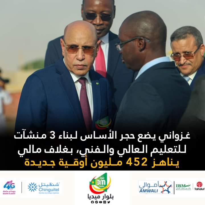 غزواني يضع حجر الأساس لبناء 3 منشآت للتعليم العالي والفني، بغلاف مالي يناهز 452 مليون أوقية جديدة: