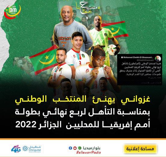 هنأ رئيس الجمهورية، محمد ولد الشيخ الغزواني المنتخب الوطني (المرابطون)، بمناسبة التأهل لربع نهائي بطولة أمم إفريقيا للمحليين.