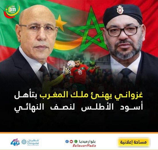 غزواني يهنئ ملك المغرب بتأهل أسود الأطلس لنصف النهائي هنأ رئيس الجمهورية محمد و…
