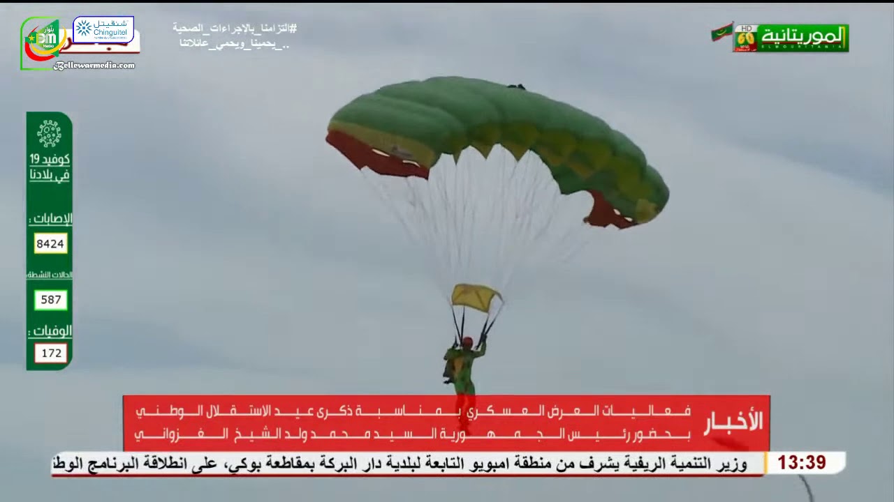 فقرة قفزالمظليين في العرض العسكر المقام بمناسبة الذكرى الستين لعيد الاستقلا الوطني لموريتانيا