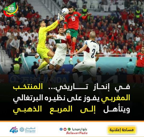 تأهل المنتخب المغربي إلى نصف نهائي كأس العالم قطر 2022، بعد فوزه على نظيره البرتغالي بهدف مقابل صفر.