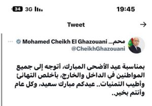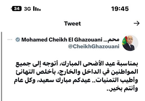 تغريدة رئيس الجمهورية، السيد محمد ولد الشيخ الغزواني، على تويتر