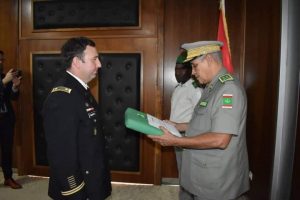 وشح اللواء حبيب الله أحمدو قائد الأركان العامة للجيوش المساعد صباح اليوم بمكتبه، باسم رئيس الجمهورية الملحق العسكري الأمريكي المقدم جاسون ويمبرلي بوسام فارس من نظام الاستحقاق الوطني، وذلك بمناسبة انتهاء مأموريته ببلادنا.