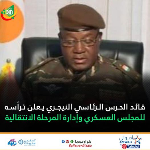 أعلن قائد الحرس الرئاسي في النيجر الجنرال عبد الرحمن تشياني اليوم ترأسه للمجلس الوطني لحماية الوطن وإدارة المرحلة الانتقالية.