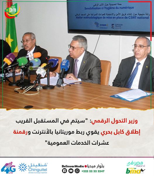 قال وزير التحول الرقمي والابتكار وعصرنة الإدارة الشيخ الكبير ولد مولاي الطاهر ،إنه سيتم في المستقبل القريب إطلاق كابل بحري يقوي ربط موريتانيا بالأنترنت، ورقمنة عشرات الخدمات العمومية.