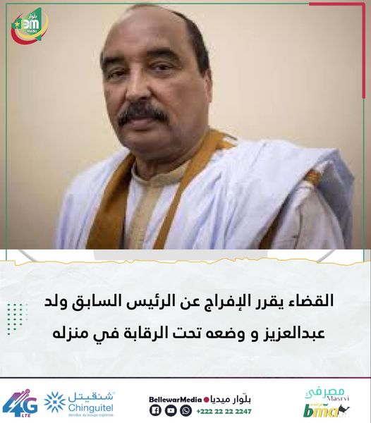 قرر القضاء وضع الرئيس السابق محمد ولد عبد العزيز ، تحت المراقبة القضائية في منزله بنواكشوط، وذلك بعد إجرائه عمليتي قسطرة بالمركز الوطني لأمراض القلب.