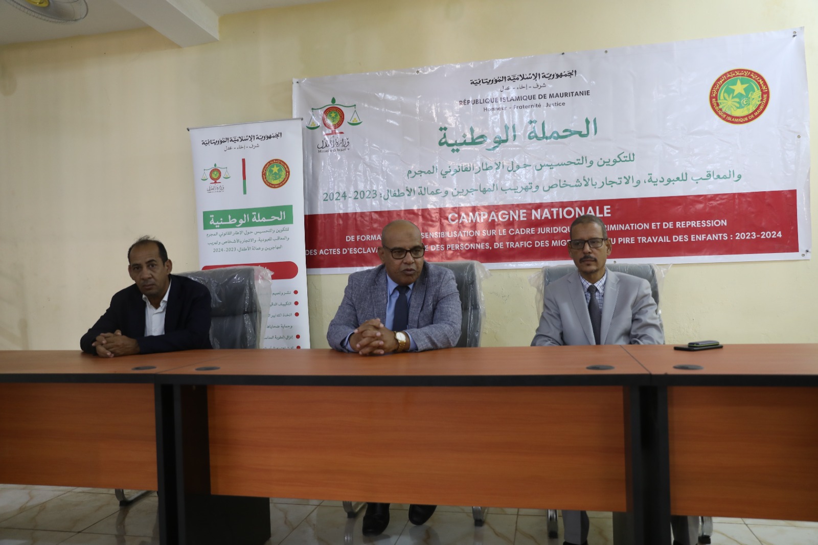 احتضن قصر العدل بولاية انواكشوط الجنوبية اليوم الخميس، نشاطات بعثة وزارة العدل المكلفة بحملة التكوين والتحسيس الوطنية حول القوانين المجرمة والمعاقبة للعبودية والاتجار بالأشخاص وتهريب المهاجرين وعمالة الأطفال المجرمة.