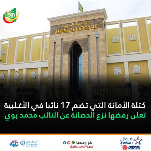 أعلنت كتلة الأمانة التي تضم 17 نائبا في الأغلبية رفضها نزع الحصانة عن النائب البرلماني محمد بوي الشيخ محمد فاضل.