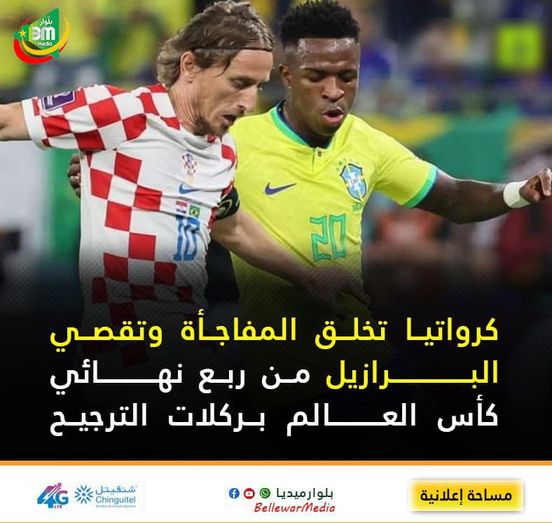 كرواتيا تخلق المفاجأة وتقصي البرازيل من ربع نهائي كأس العالم بركلات الترجيح إثر نهاية الوقتين الأصلي والإضافي بالتعادل 1⃣ – 1⃣ زملاء لوكا مودريتش أول المتأهلين إلى نصف النهائي 🏆