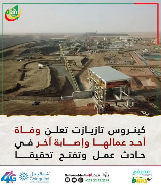 أعلنت كينروس تازيازت الليلة البارحة وفاة أحد عمالها وإصابة آخر في حادث عمل بأحد المناجم التابعة للشركة أمس الثلاثاء.