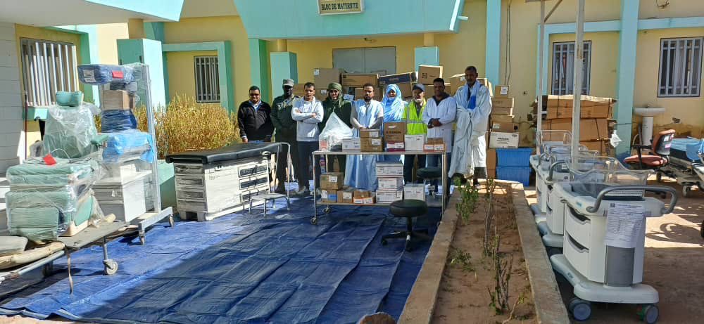 وخلال الفترة من 6 إلى 13 يناير 2026، نُفذت مهمة ميدانية بولاية تيرس زمور، تم خلالها توزيع معدات طبية ومواد استهلاكية تُقدَّر قيمتها بنحو 310 آلاف دولار أمريكي على المستشفى الجهوي بازويرات وعدد من المراكز الصحية في الولاية.