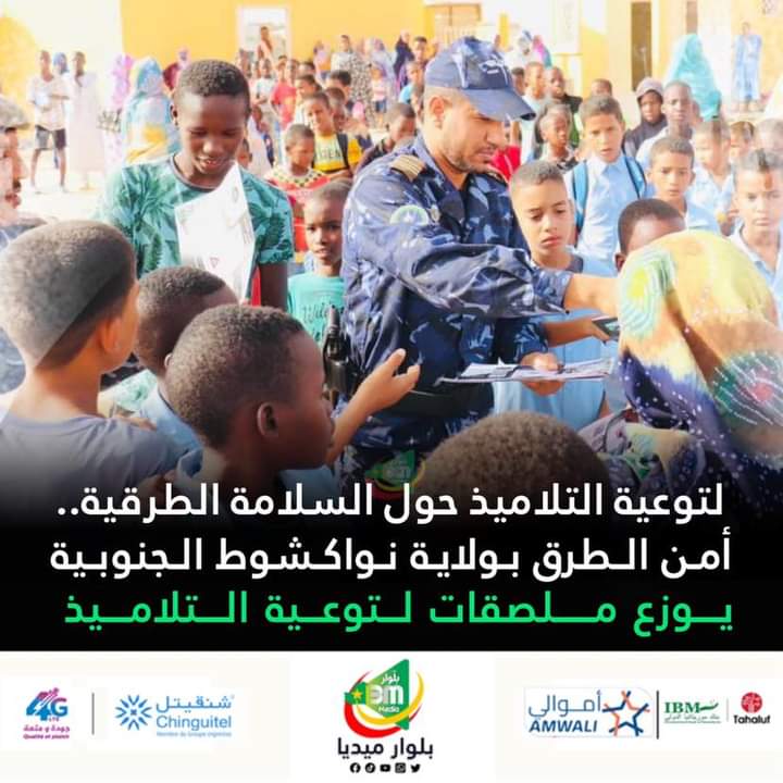 أمن الطرق بولاية نواكشوط الجنوبية يوزع ملصقات لتوعية التلاميذ: