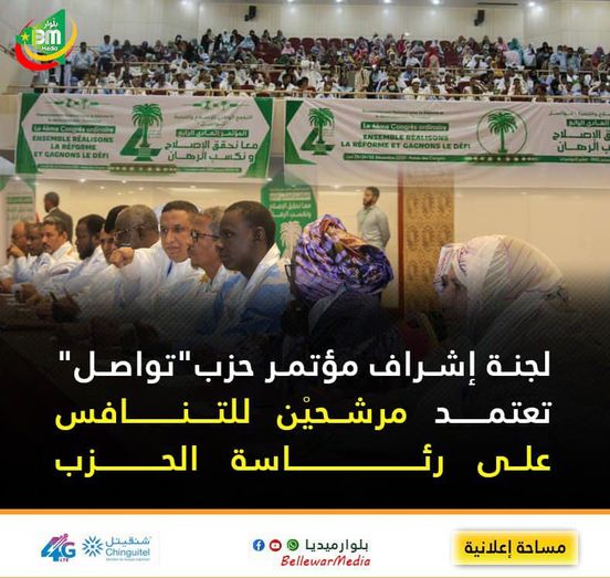 وكان حزب تواصل قد افتتح مساء الجمعة بقصر المؤتمرات في نواكشوط مؤتمره العادي الرابع تحت شعار ( معا نحقق الاصلاح ونكسب الرهان)، ويهدف الحزب من خلال هذا المؤتمر الذي يدوم ثلاثة أيام إلى تجديد هيئاته القيادية ومناقشة جميع القضايا والمواضيع ذات الصلة بتطوير الحزب وتمكينه من المضي قدما في تحقيق أهدافه.