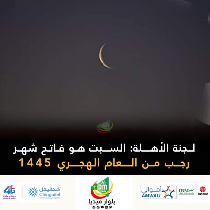 أعلنت اللجنة الوطنية للأهلة أن السبت هو فاتح شهر رجب من العام الهجري 1445، وذلك بعد توصلها بما يثبت رؤية الهلال الليلة.