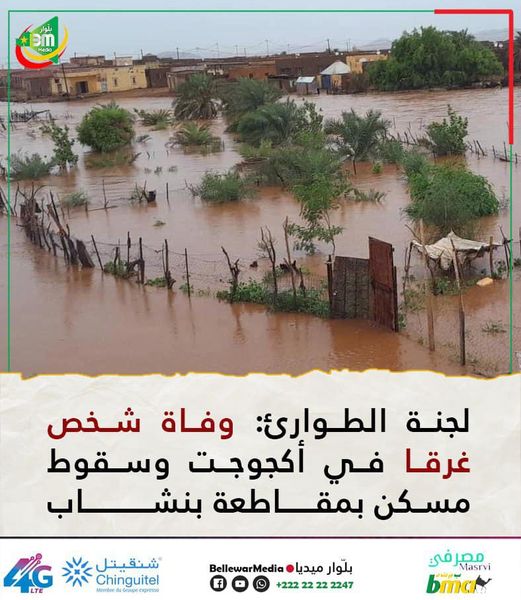 أعلنت اللجنة الوزارية الخاصة بتسيير الطوارئ وفاة شخص غرقا، في مقاطعة أكجوجت، وسقوط مسكن في قرية لجواد بمقاطعة بنشاب.