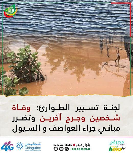 أعلنت لجنة تسيير الطوارئ وفاة شخصين وجرح آخرين، وتضرر عدد من المباني، ونفوق مواشي جراء العواصف والسيول.