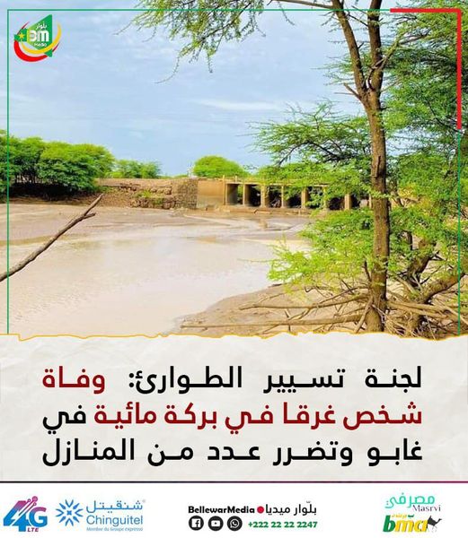 لجنة تسيير الطوارئ: وفاة شخص غرقا في بركة مائية في مقاطعة غابو وتضرر عدد من المنازل بتكانت