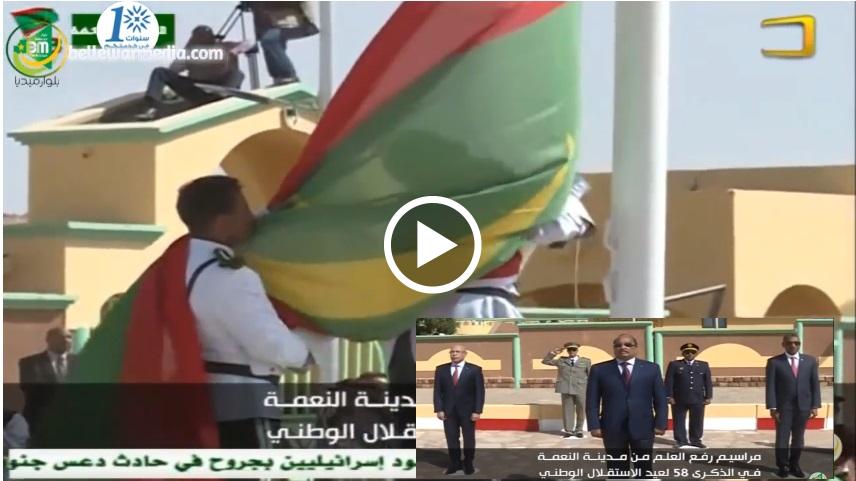 لحظة رفع العلم الوطني خلال حفل تخليد الذكرى ال58 لعيد الاستقلال الوطني في النعمة