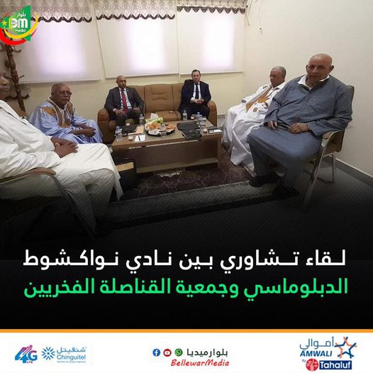 رئيس نادي نواكشوط الدبلوماسي ورئيس جمعية القناصلة الفخريبن المعتمدين في موريتانيا احمد ولد سيد أحمد و السيد سيدي احمد ولد اعبيدن، وبحضور عدد من أعضاءوناقش السادة خلال هذا اللقاء إمكانية مشاركة جمعية القناصلة الفخريين في نشاطات الدبلوماسية العمومية التي تنظمها الأكاديمية الدبلوماسية الموريتانية في إطار شراكة مع نادي نواكشوط الدبلوماسي.