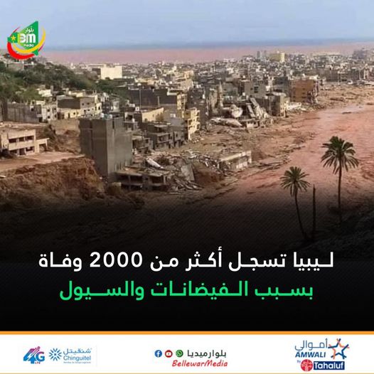خلفت السيول والفيضانات التي اجتاحت مناطق عدة شرقي ليبيا، اكثر من ألفي وفاة في مدن البيضاء والمرج وسوسة ودرنة، كما خلفت مئات القتلى والمفقودين وأحدثت دمارا في