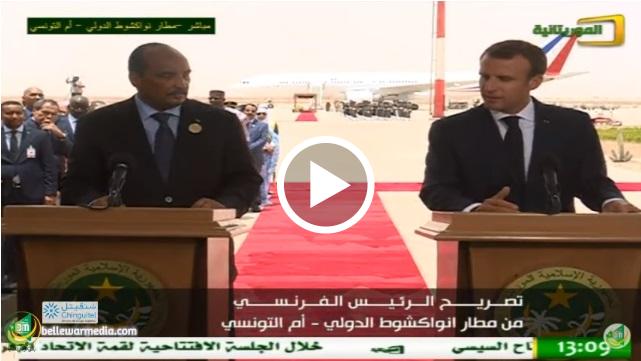 مؤتمر صحفي مشترك بين الرئيس الموريتاني والرئيس الفرنسي في مطار ام التونسي الدولي