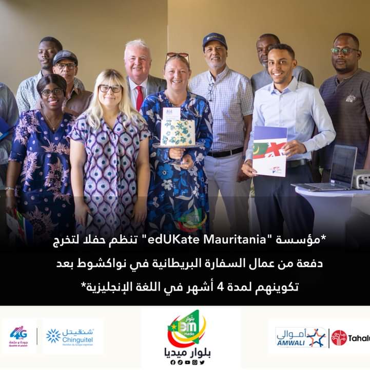 نظمت مؤسسة edUKate Mauritania، بالتعاون مع السفارة البريطانية في موريتانيا، حفل تخرج للموظفين الموريتانيين في السفارة البريطانية في نواكشوط، إثر تكوينهم لمدة أربعة أشهر في اللغة الإنجليزية.