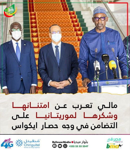 أعرب المجلس العسكري الانتقالي في مالي ، عن امتنانه وشكره لموريتانيا على تضامنها مع الشعب المالي في وجه حصار مجموعة “ايكواس”.