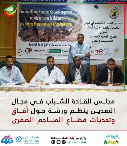 نظم مجلس القادة الشباب في مجال التعدين، اليوم السبت، ورشة تناقش آفاق وتحديات قطاع المناجم الصغرى، بمشاركة مندوبين عن وزارة المعادن وشركة معادن موريتانيا وغرفة التجارة والصناعة وعدد من الفاعلين والباحثين في القطاع المعادن.
