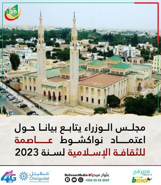 قدم وزير الشؤون الإسلامية والتعليم الأصلي، وزير الثقافة والشباب والرياضة والعلاقات مع البرلمان وكالة، خلال اجتماع مجلس الوزراء اليوم الخميس، بيانا يتعلق باعتماد نواكشوط عاصمة للثقافة الإسلامية لسنة 2023.