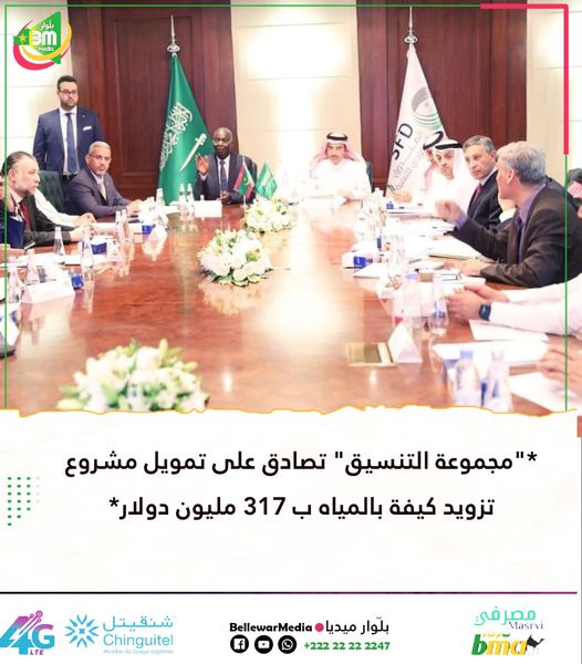 صادقت مجموعة تنسيق هيئات التمويل العربية والإسلامية التي تشمل الصندوق السعودي للتنمية، والصندوق الكويتي للتنمية الاقتصادية العربية، وصندوق أبو ظبي للتنمية، والبنك الإسلامي للتنمية، والصندوق العربي للإنماء الاقتصادي والاجتماعي، وصندوق الأوبك للتنمية الدولية، في اجتماع عقد صباح اليوم في الرياض بالمملكة العربية السعودية بحضور معالي وزير الشؤون الاقتصادية وترقية القطاعات الإنتاجية السيد أوسمان مامودو كان ومعالي وزير المياه والصرف الصحي السيد محمد الحسن ولد بوخريص، و سعادة الرئيس التنفيذي للصندوق السعودي للتنمية الأستاذ سلطان بن عبدالرحمن المرشد وبحضور عدد من ممثلي الصناديق والبنوك التنموية الدولية والإقليمية.
