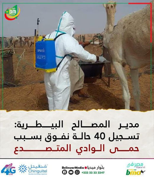 وأضاف أن التحاليل التي أجرتها المصالح البيطرية بعد ذلك أكدت وجود حمى الوادي المتصدع “حمى وادي رفت” مع “الباسترولوز” لدى الإبل، مشيرا إلى أن التحاليل بينت حركية المرض بدون تسجيل أضرار، في مناطق ” لكراف” بمقاطعة الطينطان و” اسويفات” في كيفة و “باراين” في تجكجة.