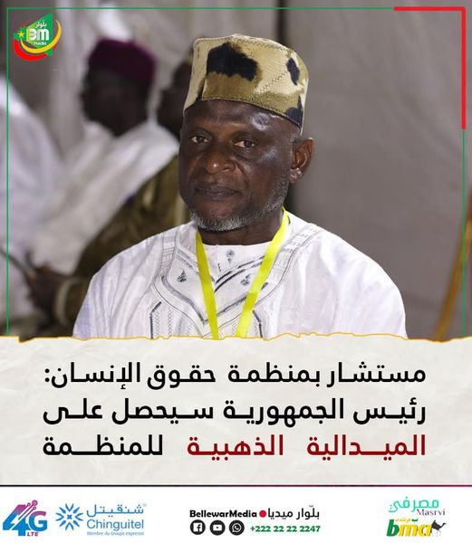 قال مستشار العلاقات الإفريقية لدى المنظمة الدولية لحقوق الإنسان، رئيس المجلس الوطني التنفيذي لاتحاد الجمعيات والمنظمات والمجالس الإسلامية في ساحل العاج، لبروفسور ليغري يحيى، إن رئيس الجمهورية محمد ولد الشيخ الغزواني سيحصل، عن قريب، على الميدالية الذهبية للمنظمة الدولية لحقوق الإنسان.
