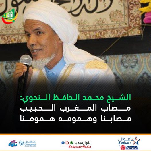 وبهذه المناسبة الأليمة فإنني أصالة عن نفسي ونيابة عن العلماء والمشايخ والأئمة في هيئات المجتمع المدني التي نشرف عليها “التجمع الثقافي الاسلامي بموريتانيا وغرب إفريقيا” و”هيئة الشيخ النحوي للعلم والعمل” وجميع أحبابنا في كل مكان، أتقدم بخالص التعازي لصاحب الجلالة أمير المؤمنين وحامي حمى الملة والدين الملك محمد السادس حفظه الله ونصره وحماه من كل سوء، وللحكومة والشعب المغربي الشقيق، راجيا من الله العلي القدير أن يتغمد الشهداء بواسع رحمته وأن يشفي الجرحى وأن يحفظ المغرب ملكا وحكومة وشعبا بخفي ألطافه ويجعله دوما منارة علم وإيمان وواحة أمن وأمان.