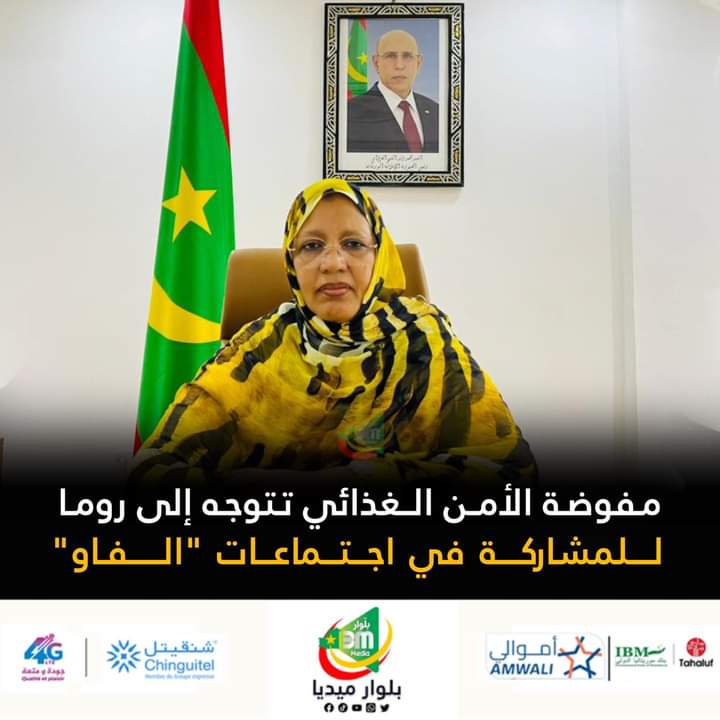 توجهت مفوضة الأمن الغذائي فاطمة بنت خطري، فجر اليوم الأحد، إلى العاصمة الإيطالية روما، وذلك لتمثيل موريتانيا في اجتماعات منظمة الأمم المتحدة للأغذية والزراعة FAO.