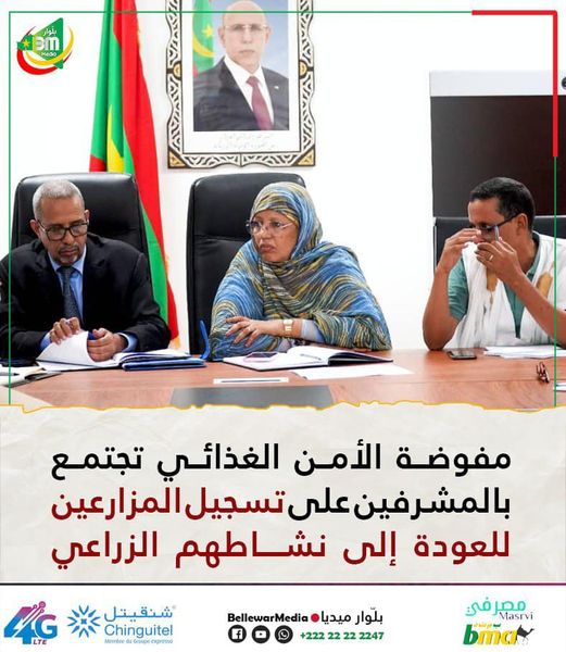 ترأست مفوضة الأمن الغذائي، فاطمة بنت خطري، اليوم الأحد في مقر المفوضية، اجتماعا برؤساء لجان الإشراف الجهوية والمقاطعية في نواكشوط، على عملية تسجيل المزارعين الراغبين في العودة إلى أماكنهم الأصلية لمزاولة نشاطهم الزراعي.