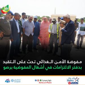 حثت مفوضة الأمن الغذائي، فاطمة بنت خطري، الجهات المشرفة على الأشغال الجارية لتشييد مخازن جديدة للمفوضية، في مقاطعات روصو وكرمسين وانتيكان، بولاية اترارزة، على ضرورة التقيد بدفتر الالتزامات، وخاصة فيما يتعلق بجودة الأشغال وآجال تسليم المخازن.