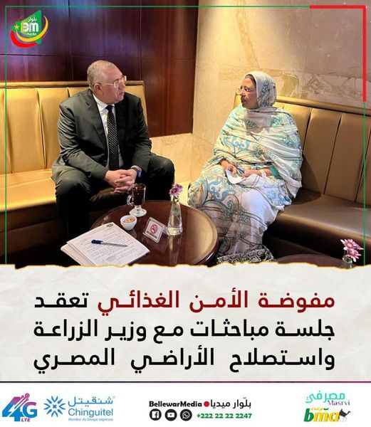 وتناولت المباحثات علاقات التعاون بين موريتانيا ومصر، وسبل تعزيزها وتطويرها، خاصة في مجال الأمن الغذائي، وركز الجانبان خلال جلسة المباحثات على التعاون في مجالات، التخزين، والمجال الرقمي وتطبيقاته في مجال الأمن الغذائي، وآليات اقتناء الأسمدة والمدخلات الزراعية، وقد اتفق الجانبان على وضع استراتيجية مشتركة للتعاون بين البلدين في هذه المجالات.
