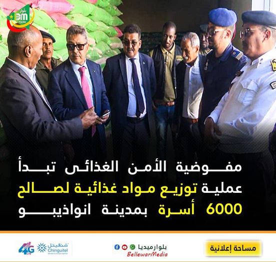 انطلقت أمس من مباني مفوضية الأمن الغذائى بانواذيبو عملية توزيعات مجانية لمختلف المواد الغذائية على بعض الأسر المتعففة على مستوى المدينة، تستفيد منها أزيد من 6000 أسرة من مختلف أحياء انواذيبو.