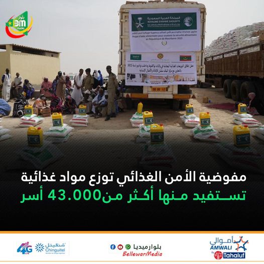 وأشارت إلى “أن التوزيعات الغذائية المجانية الحالية، تستفيد منها 43193 أسرة في جميع بلديات ولايات نواكشوط وداخلت نواذيبو، من خلال توزيع 1944 طنا من المواد الغذائية الأساسية.”